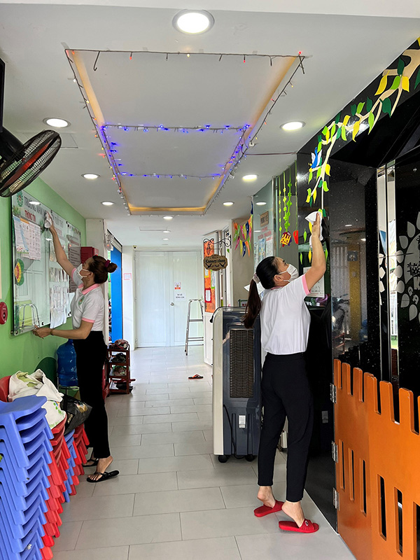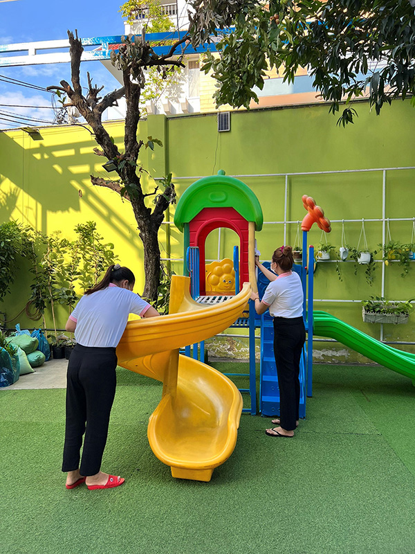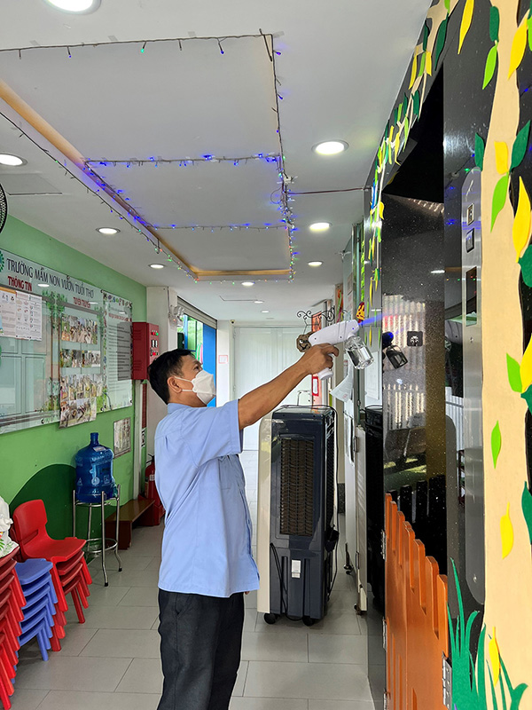 Các giáo viên và nhân viên luôn luôn đảm bảo vệ sinh từ ngoài vào trường vào trong lớp , hãy chung tay phòng chống dịch bệnh
