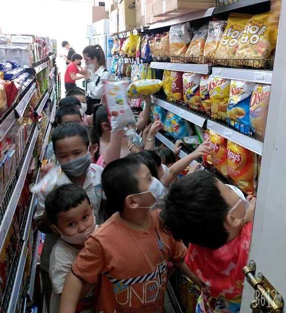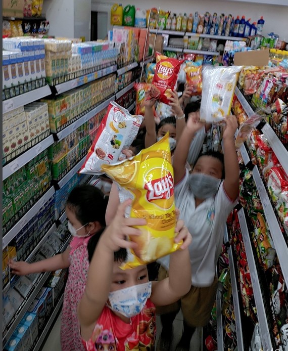 Để chuẩn bị sinh nhật của các bạn có ngày sinh vào tháng 5. Tập thể lớp Eagle đã cùng nhau đến siêu thị mua một số bánh kẹo cho các bạn. Các anh chị nay đã lớn và biết tự giác xếp hàng nghiêm túc, hăng say quan sát và tìm hiểu các sản phẩm trưng bày trong siêu thị.