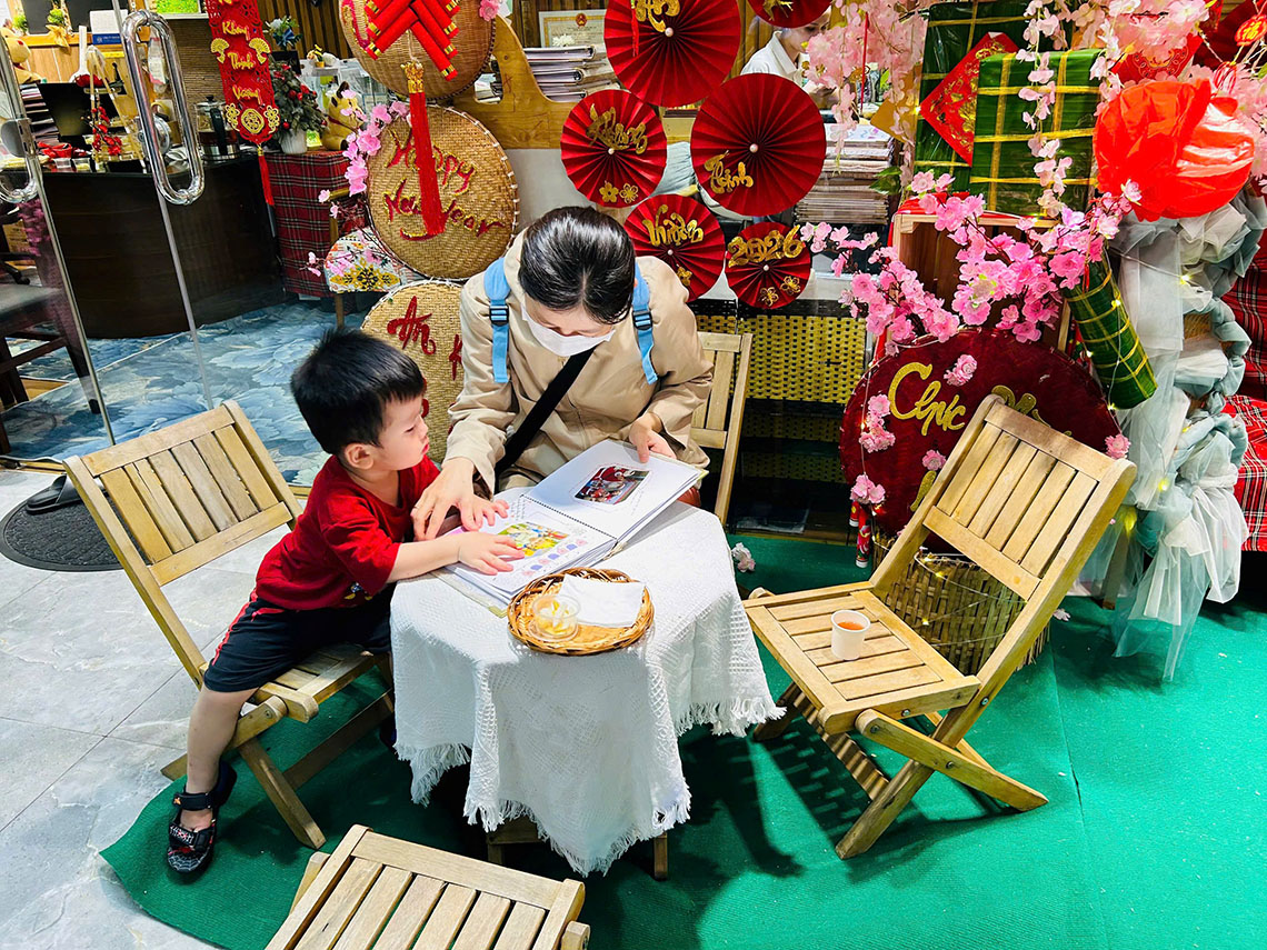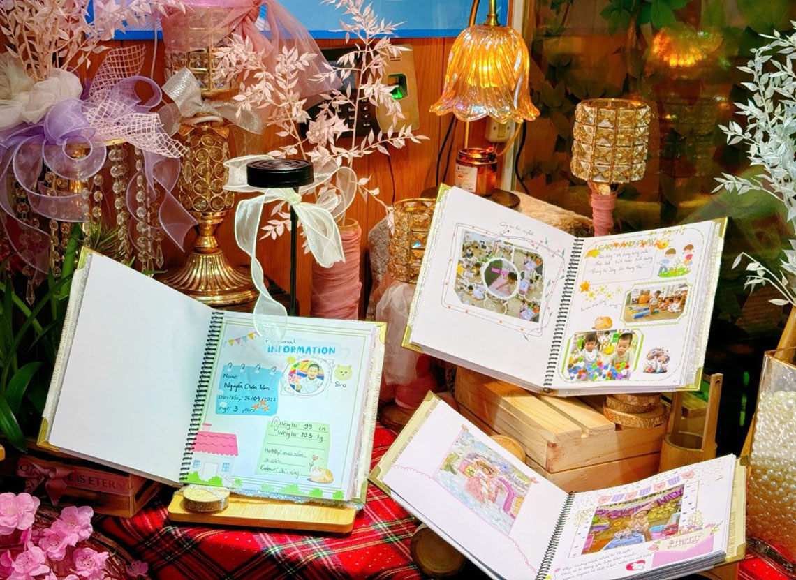 Nhân dịp Tết Đến Xuân Về, nhà trường tổ chức “Triển lãm sổ nhật ký” để ba mẹ và các con cùng nhau thưởng thức, nhâm nhi 1 chút bánh mứt và cùng xem lại hành trình học tập và vui chơi của con tại trường trong học kì vừa qua.