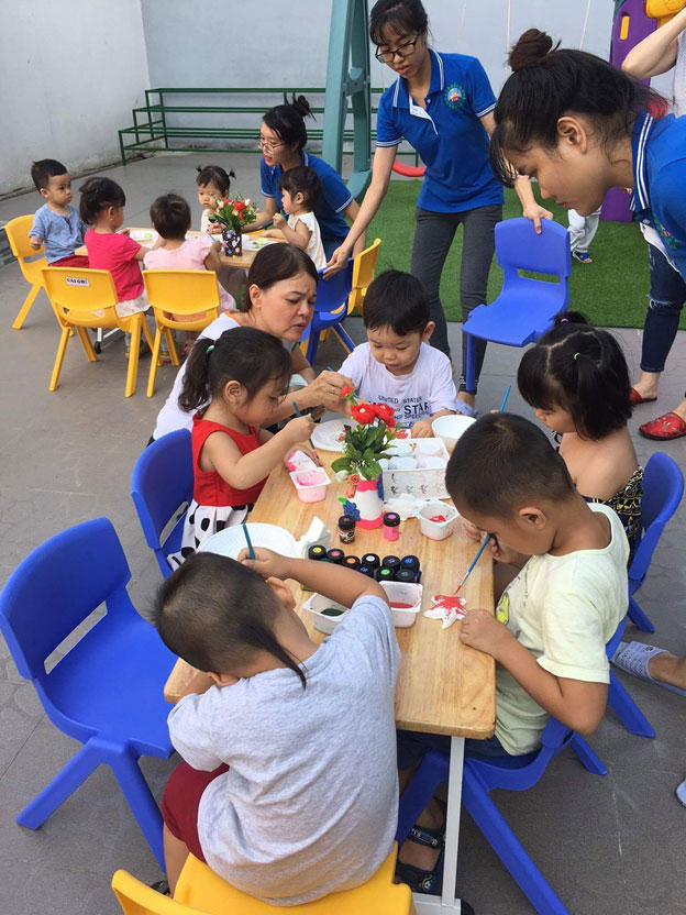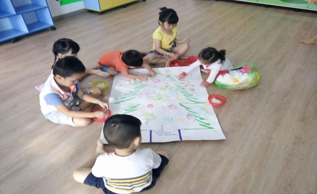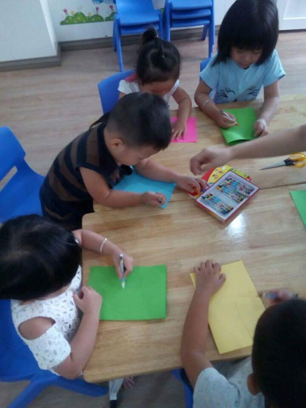 Hôm nay các bé lớp Donald được cô hướng dẫn làm cây thông noel làm từ giấy, màu vẽ, bông gòn, các bạn chăm chú vẽ mà quên luôn mình đang ngỗi hay nằm hihi