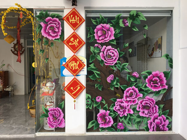 Toàn cảnh bức tranh hoa mẫu đơn ngày tết 2017