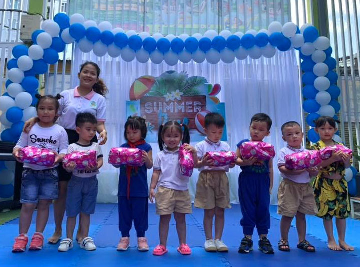 Cuối chương trình các bé có những món quà nhỏ mang về lớp chung vui cùng các bạn.